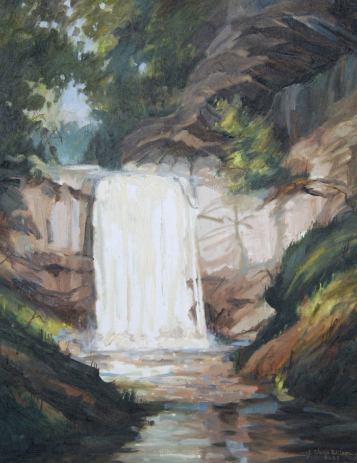 North Carolina artist J. Chris Wilson\‘s Landscape Painting Study Looking Glass Falls, Transylvania "From Murphy to Manteo—An Artist\‘s Scenic Journey"