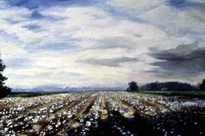 North Carolina artist J. Chris Wilson\‘s Landscape Painting Cotton Field with Clouds see also "From Murphy to Manteo—An Artist\‘s Scenic Journey"