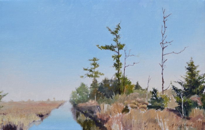 North Carolina artist J. Chris Wilson\‘s Landscape Painting Study for Creek to Sound on Mashoes Road, Dare County "From Murphy to Manteo—An Artist\‘s Scenic Journey"