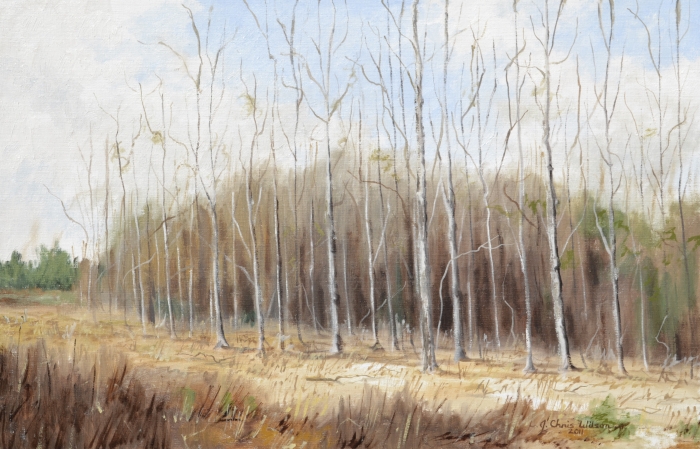 North Carolina artist J. Chris Wilson\‘s Landscape Painting Study for Sentinels, Davie County "From Murphy to Manteo—An Artist\‘s Scenic Journey"