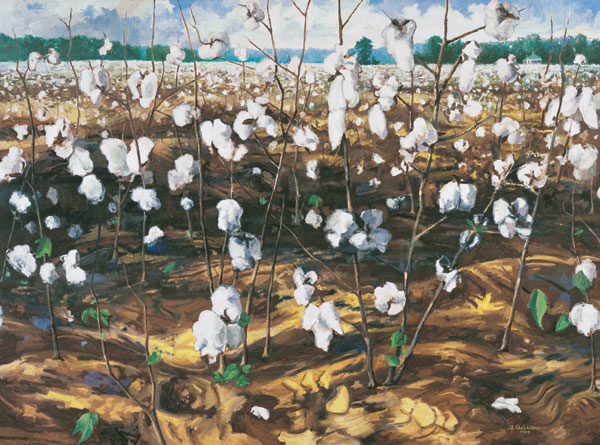 North Carolina artist J. Chris Wilson\‘s Landscape Painting Cotton Field, Cool Spring see also "From Murphy to Manteo—An Artist\‘s Scenic Journey"