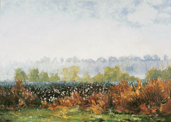 North Carolina artist J. Chris Wilson\‘s Landscape Painting Cotton Field, Early Morning see also "From Murphy to Manteo—An Artist\‘s Scenic Journey"