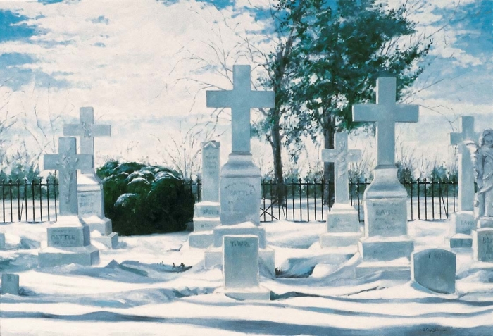 North Carolina artist J. Chris Wilson\‘s Landscape Painting Cross Garden in the Snow "From Murphy to Manteo—An Artist\‘s Scenic Journey"