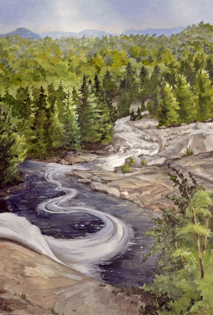 North Carolina artist J. Chris Wilson\‘s Landscape Painting Looking Down Toxaway Falls, Transylvania County \“From Murphy to Manteo—An Artist\‘s Scenic Journey\”