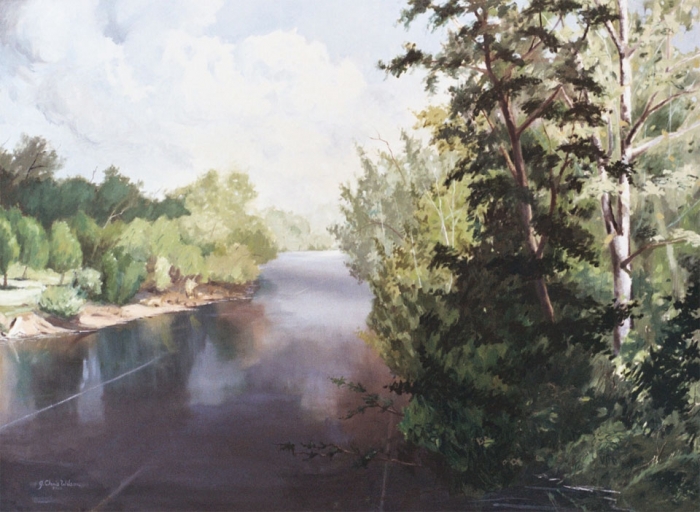 North Carolina artist J. Chris Wilson\‘s Landscape Painting Tar River from the Tarboro Bridge, Edgecombe County "From Murphy to Manteo—An Artist\‘s Scenic Journey"